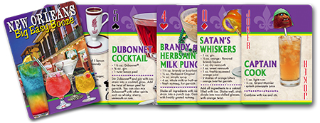 Pack of 12 • 144 in a boxBig Easy Booze. 54 recipes and photo of the drink.Old acquaintances will never be forgotten in New Orleans! We start our mornings with Milk Punch and Bloody Mary; Sazerac and Gin Fizz lead our hit parade. We even celebrate with Hurricanes. Lift your glass and Laissez les bons temps rouler... let the good times roll! 54 card deck (including Jokers,13 Clubs, 13 Diamonds, 13 Hearts, and 13 Spades).