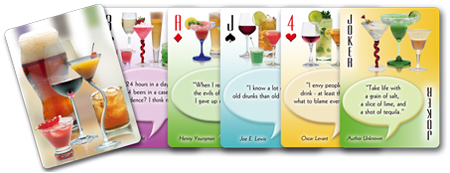 Pack of 12 • 144 in a box54 card deck (including Jokers,13 Clubs, 13 Diamonds, 13 Hearts, and 13 Spades). Each set includes 54 different funny and famous quotes about drinking!