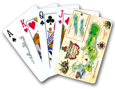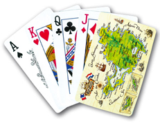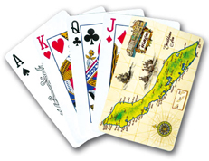 Pack of 12 • 144 in a boxDeck of 54 Cards. Traditional Playing Card Faces.Back of the cards features the map of the Caribbean Sea.